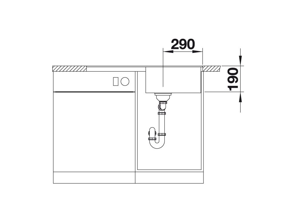 - odtoková armatura 3 1/2" s excentrem, sifon s odbočkou na myčku