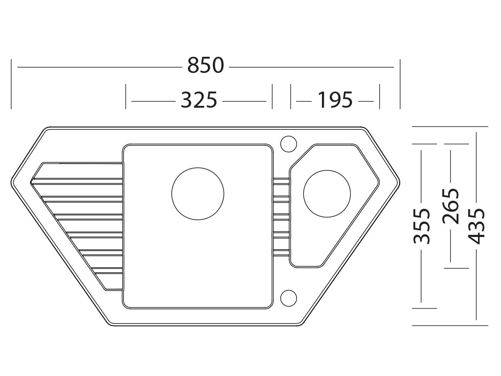 Drez je určený pre hornú montáž do pracovnej dosky a minimálne 650 mm široké skrinky.