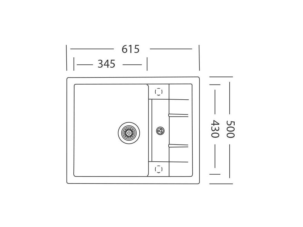 Granitový drez Sinks CRYSTAL 615 Titanium vyniká kvalitou použitých materiálov, vďaka čomu je naň poskytovaná predĺžená záruka 5 rokov. Drez je určený pre skrinku od 500 mm a jeho rozmer činí 615 x 500 mm. Hĺbka 200 mm zabezpečí bezproblémové používanie. Granitové drezy Sinks sú vyrobené z materiálu, ktorá obsahuje min. 80% jemného kameniva, čo v spojení s kvalitným akrylátovým spojivom zaručuje mimoriadnu pevnosť a odolnosť. Zároveň je povrch drezu jemný a na dotyk príjemne kamenný.