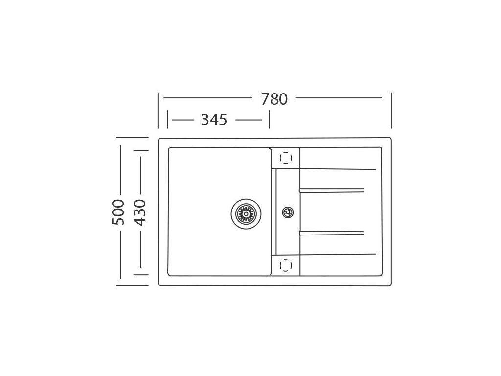 Pomer 80% kameniva a 20% akrylátového spojiva zaručuje mimoriadnu pevnosť, tvrdosť, odolnosť voči poškriabaniu, vysokým teplotám, UV žiareniu (farebne konzistentné). Jedná sa o homogénny materiál, prefarbený v celej svojej vrstve. Hladký, jemný a príjemne kamenný povrch sľubuje jednoduchú údržbu. Granitový drez s odkvapkávačom na báze akrylátového spojiva. Drez je vybavený sifónom pre úsporu miesta, teda je možné využiť priestor pod drezom na umiestnenie odpadkového koša, police či výsuvu. Záruka 5 rokov.
