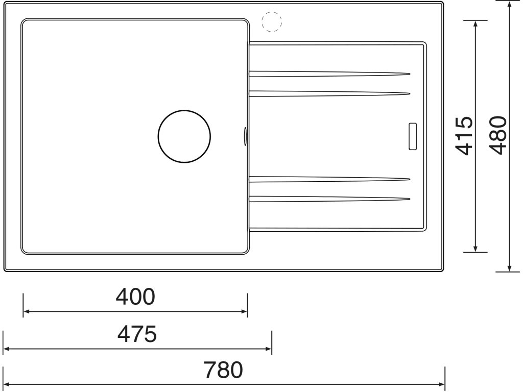 Granitový drez Sinks LINEA 780 N granblackGranitový drez Sinks LINEA 780 N granblack vyniká kvalitou použitých materiálov, vďaka čomu je naň poskytovaná predĺžená záruka 5 rokov. Drez je určený pre skrinku od 500 mm a jeho rozmer je 780 x 480 mm. Hĺbka 190 mm zaistí bezproblémové používanie. Granitové drezy sú všeobecne vyrábané z cca 80% drvenej žuly, spojiva a farbiva. Tým sa dosiahne kameninový povrch, ktorý je veľmi príjemný na dotyk. Sila materiálu je zhruba 6 až 10 mm.