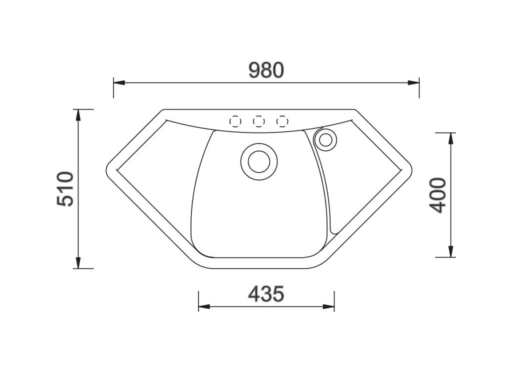 Drez je určený pre skrinku od 500 mm a jeho rozmer činí 980 x 510 mm. Hĺbka 210 mm zabezpečí bezproblémové používanie.
