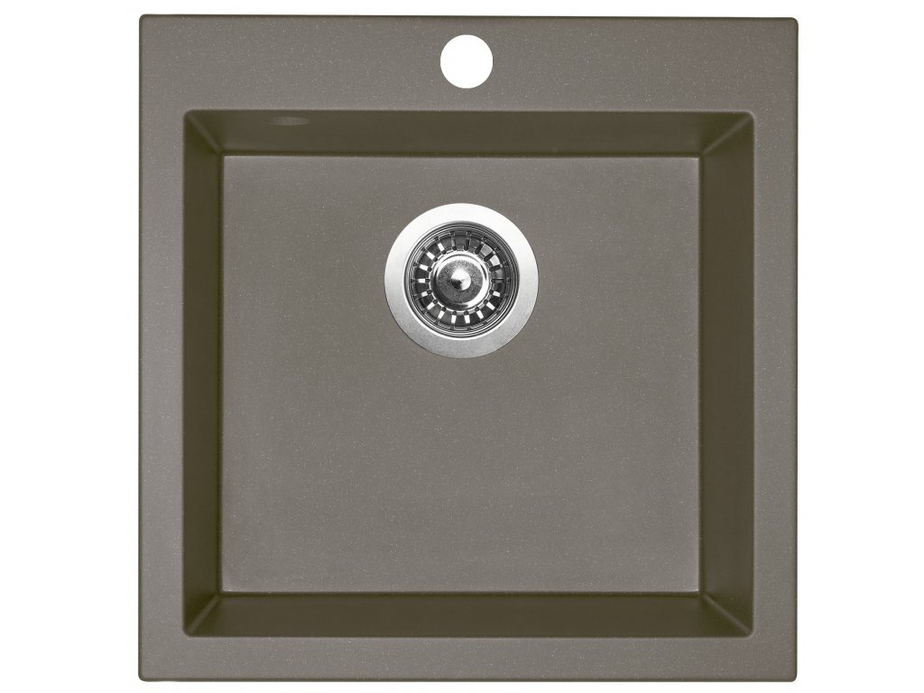 Granitový drez Sinks VIVA 455 TrufflePomer jemného žulového piesku (min. 80% kameniva) a polyesterového spojiva s prímesou farbiva zaručuje mimoriadnu pevnosť, tvrdosť, odolnosť voči poškriabaniu, vysokým teplotám, UV žiareniu (farebne konzistentné). Jedná sa o homogénny materiál, prefarbený v celej svojej vrstve. Hladký, jemný a príjemne kamenný povrch sľubuje jednoduchú údržbu. Granitový jednodrez Sinks VIVA 455 vyrobený na báze polyesterového spojiva so zárukou 5 rokov.