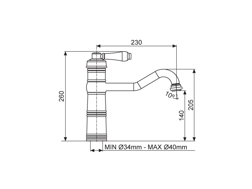 Drezová retro batéria Sinks RETRO Casanova Bronz so zárukou 5 rokov na keramickú kartuši. Ramienko je otočné a batéria je dodávaná so všetkým príslušenstvom pre montáž. Výška batérie 260 mm.