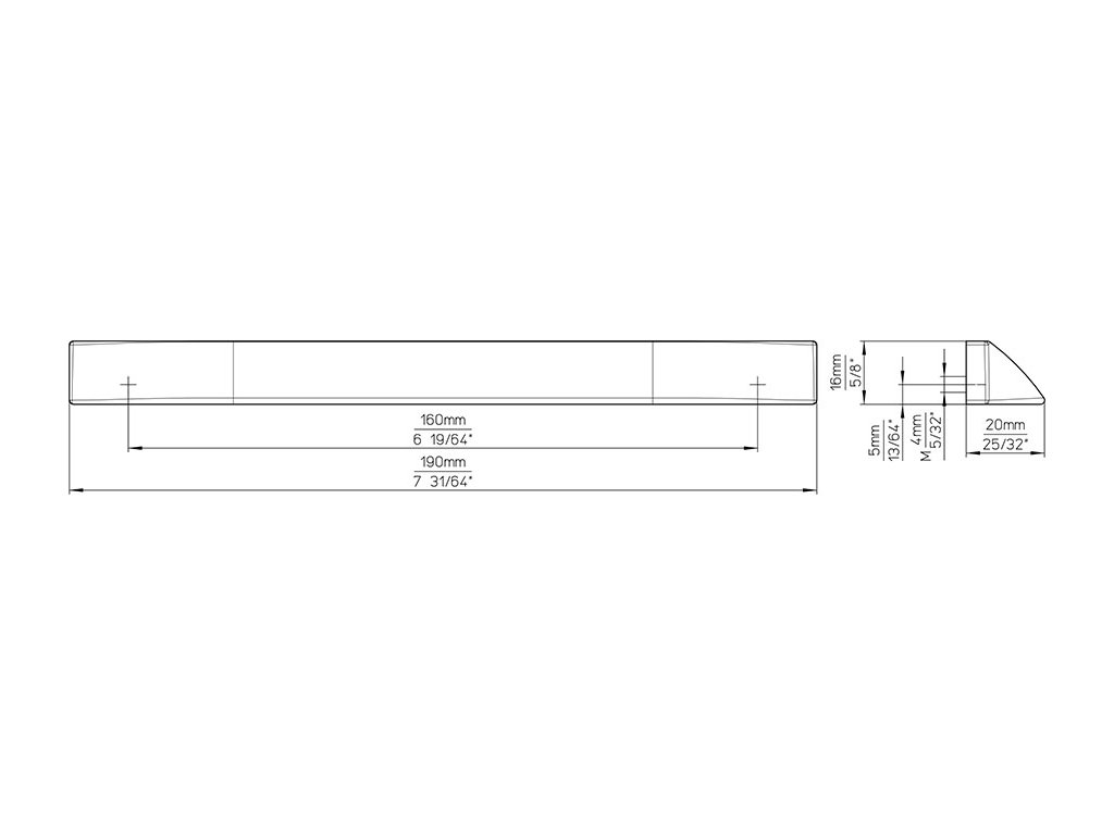 Hybridná kovová úchytka SIRO Dĺžka: 190 mm, Rozteč: 160 mm, Povrch: železo brúsené Súčasť balenia: 2x M4 skrutky.
