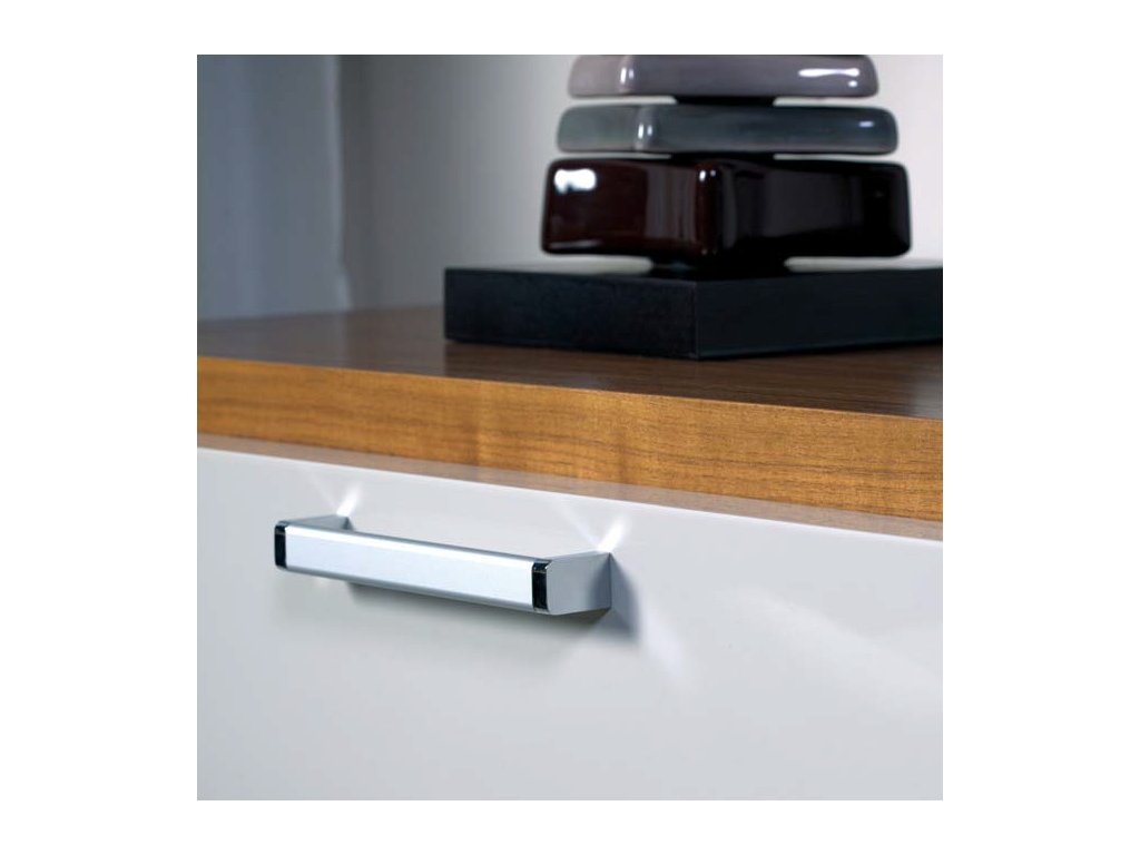 Od výrobcu GAMET. Úchytka má lakovanú povrchovú úpravu čiernej farby, v kombinácii s nožičkami vo farbe chróm. Tvar robí úchytku príjemnú pri otvorení dvierok a zároveň ladí v dizajnovom interiéri. Hodí sa do kúpeľne ako kontrastný prvok na biele dvierka, nôžky ladí napríklad s chrómovou umývadlovou batériou. Na komode sa nestratí naopak pri voľbe lesklých dvierok dotvorí dizajn lesku celej nábytkovej zostavy.