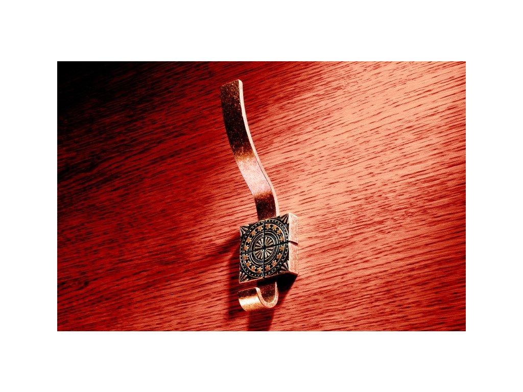 retro kovový vešiak v povrchu mosadz patina (rustikálne, retro, vintage design)