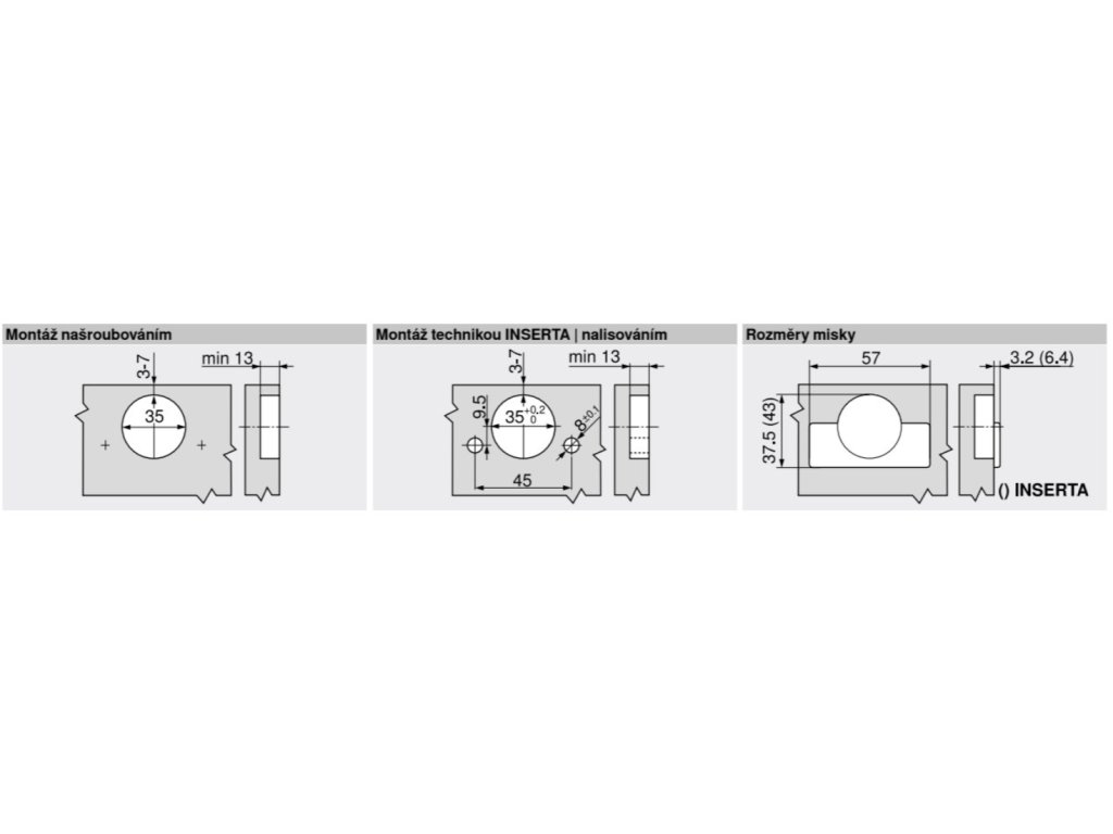 | Priemer montážnej misky: | 35 mm |
