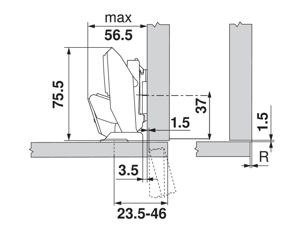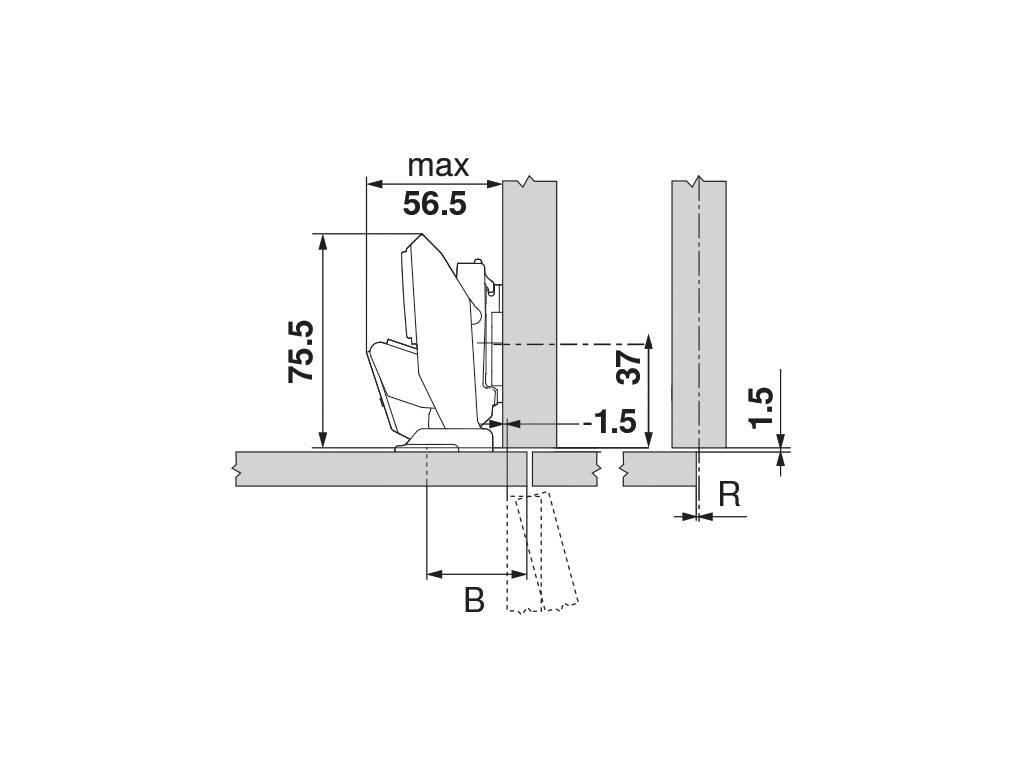 Nábytkový záves BLUM CLIP od svetoznámeho výrobca BLUM. Jednoduché a rýchle uchytenie závesu k podložke pomocou klipového mechanizmu, ktorý je kompatibilný s ďalšími závesmi BLUM. Možno kombinovať so závesmi s tlmením série CLIP TOP BLUMOTION.