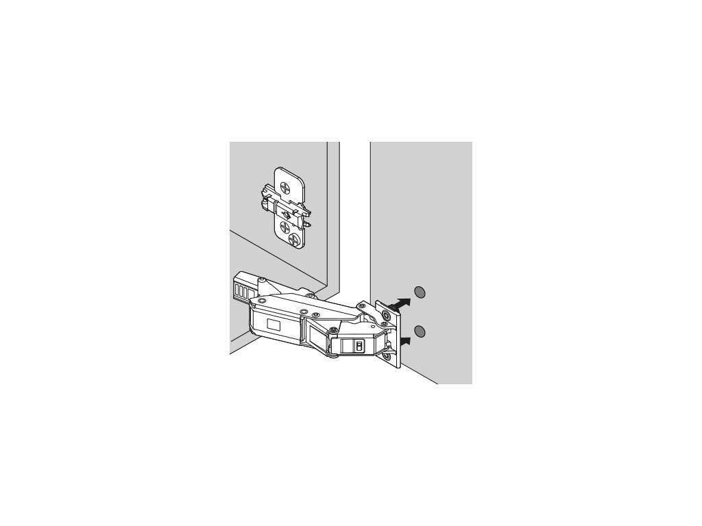 Nastavenie pozície dvierka v dvoch smeroch na závese a pomocou podložky v treťom smere.