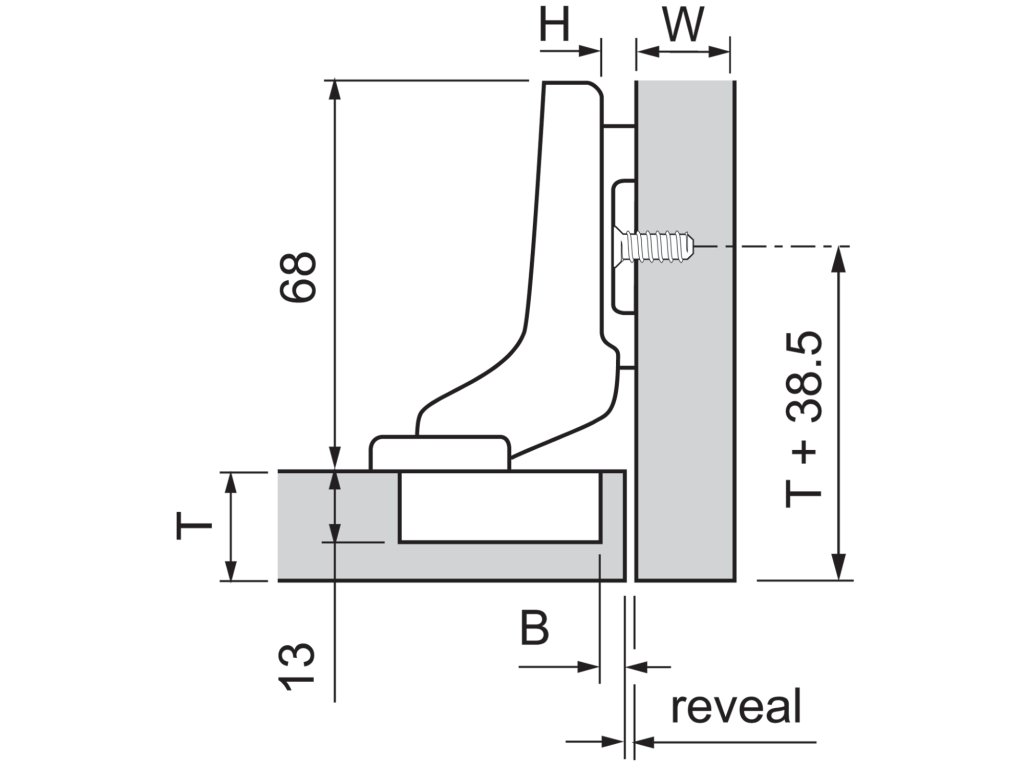 Možno kombinovať so závesmi s tlmením rady CLIP TOP BLUMOTION. Uchytenie do dvierok pomocou skrutiek.