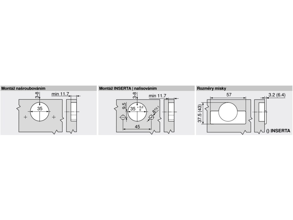 | Priemer montážnej misky: | 35 mm |
