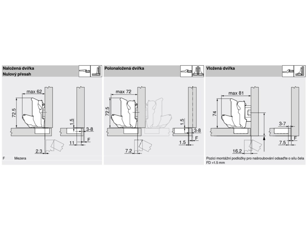 - vzdialenosť od korpusu: + 3 / -2 mm