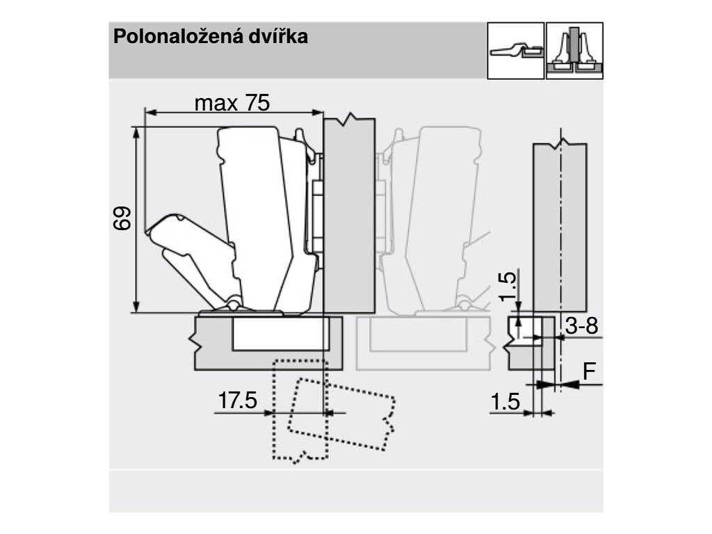 Nábytkový záves sa používa do otvorov s priemerom 35 mm.