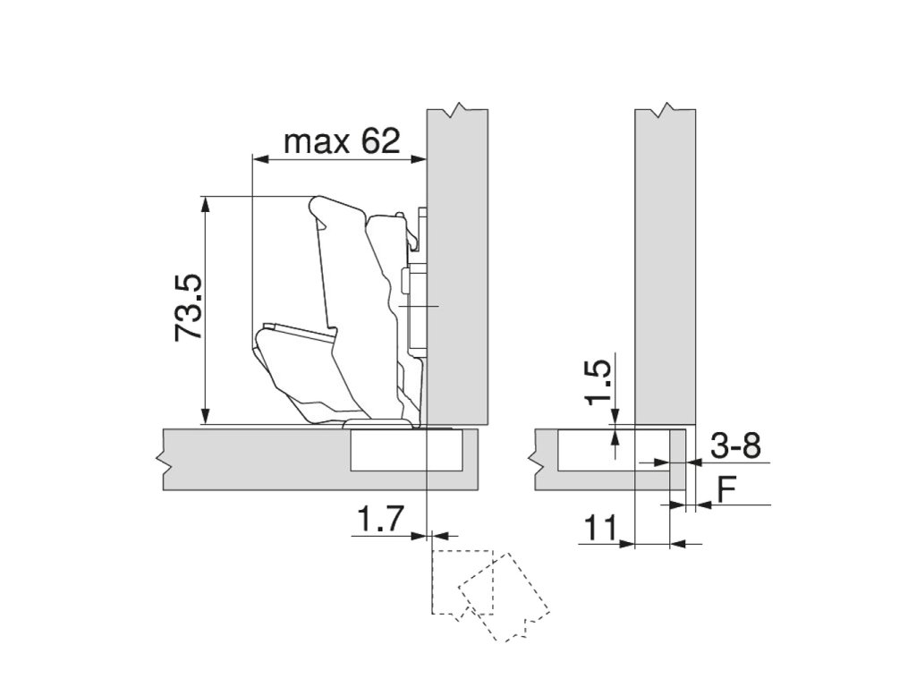 Nábytkový záves sa používa do otvorov s priemerom 35 mm.