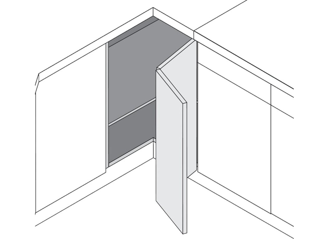 Nábytkový záves BLUM CLIP od svetoznámeho výrobca BLUM. Jednoduché a rýchle uchytenie závesu k podložke pomocou klipového mechanizmu, ktorý je kompatibilný s ďalšími závesmi BLUM. Ide o špeciálnu uhlový stredový záves pre rohové skrinky so skladanými dvierkami.