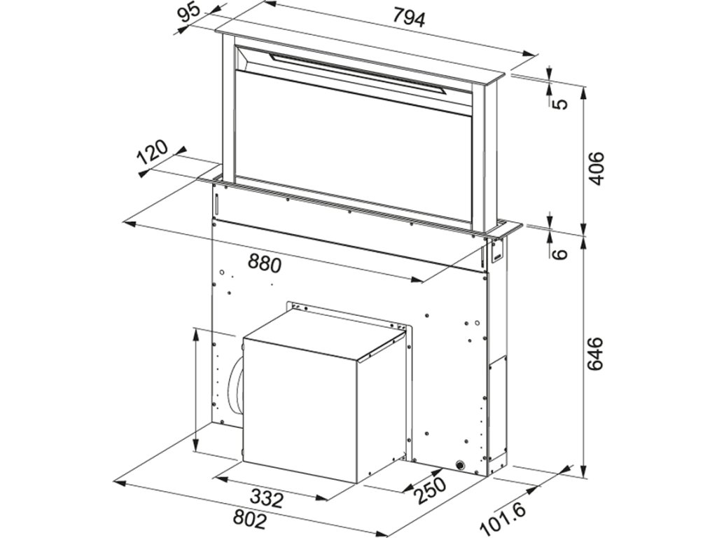 Vstavaný odsávač výsuvný zabudovaný do pracovnej dosky. Odsávač má montážnu šírku 88 cm, 4 stupne výkonu, intenzívny stupeň a dobeh. Odsávač pár má maximálnu hlučnosť 70 dB a maximálny výkon 710 m3 / h.