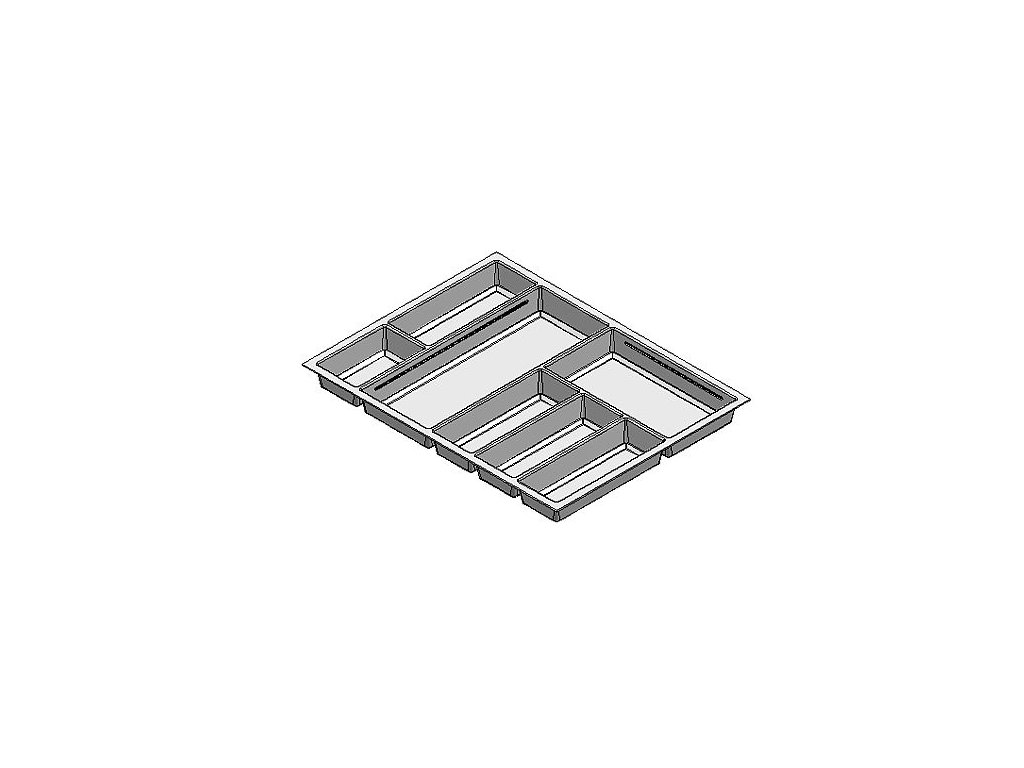 Príborník Sky 70 pre prehľadné usporiadanie príborov a kuchynského náčinia. Kombinácia pevných priehradiek a pohyblivých prepážok (k dokúpeniu zvlášť). Pre rôzne typy zásuvkových systémov - StrongMax, Legrabox, alebo aj iné typy (rozmery možno prispôsobiť orezaním).